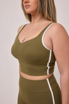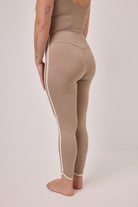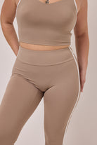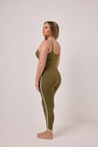 Il top con spalline sottile e tagli sportivo sostiene senza costringere, mentre i leggings a vita alta con bande laterali a contrasto slanciano la figura e donano un tocco dinamico e femminile.