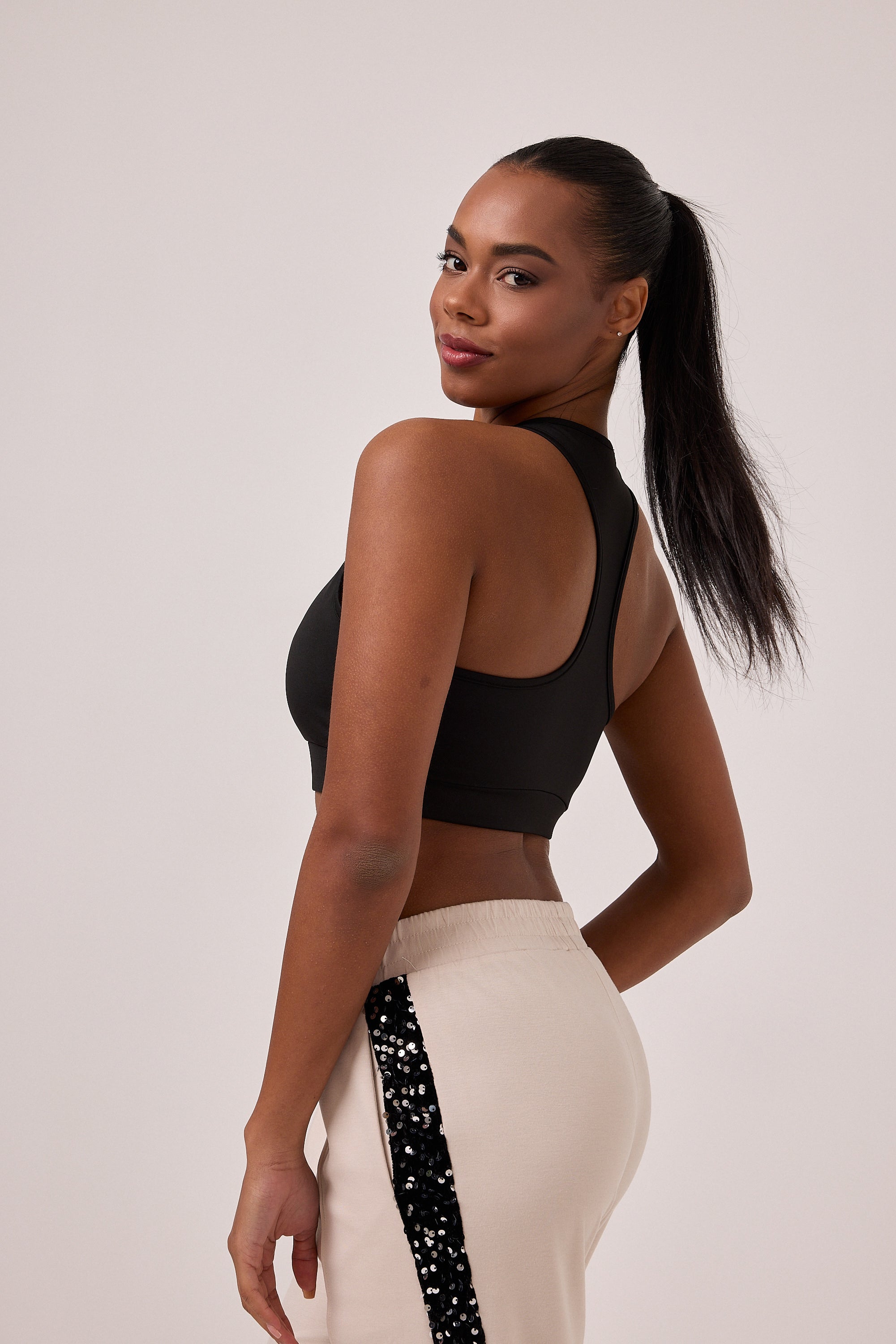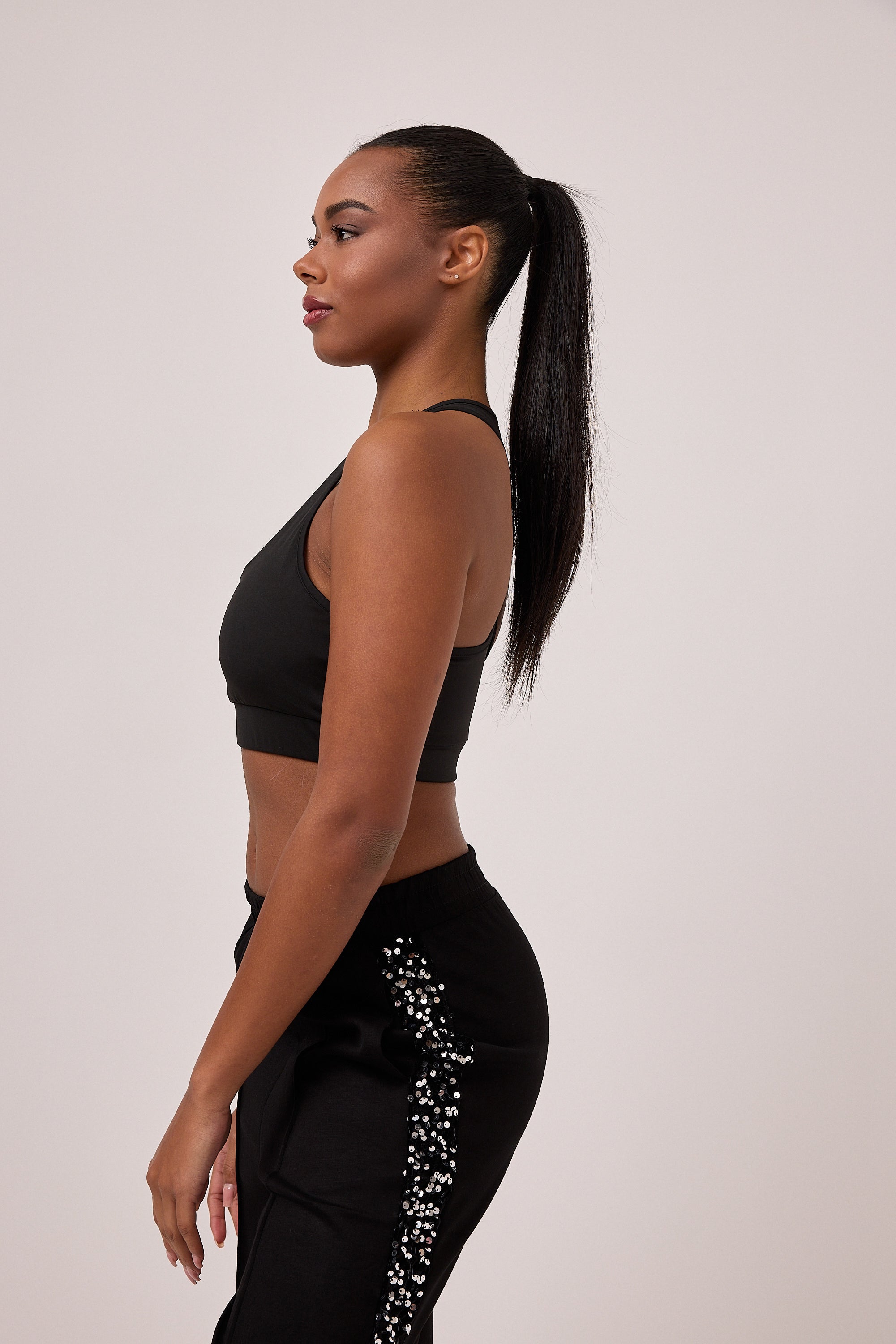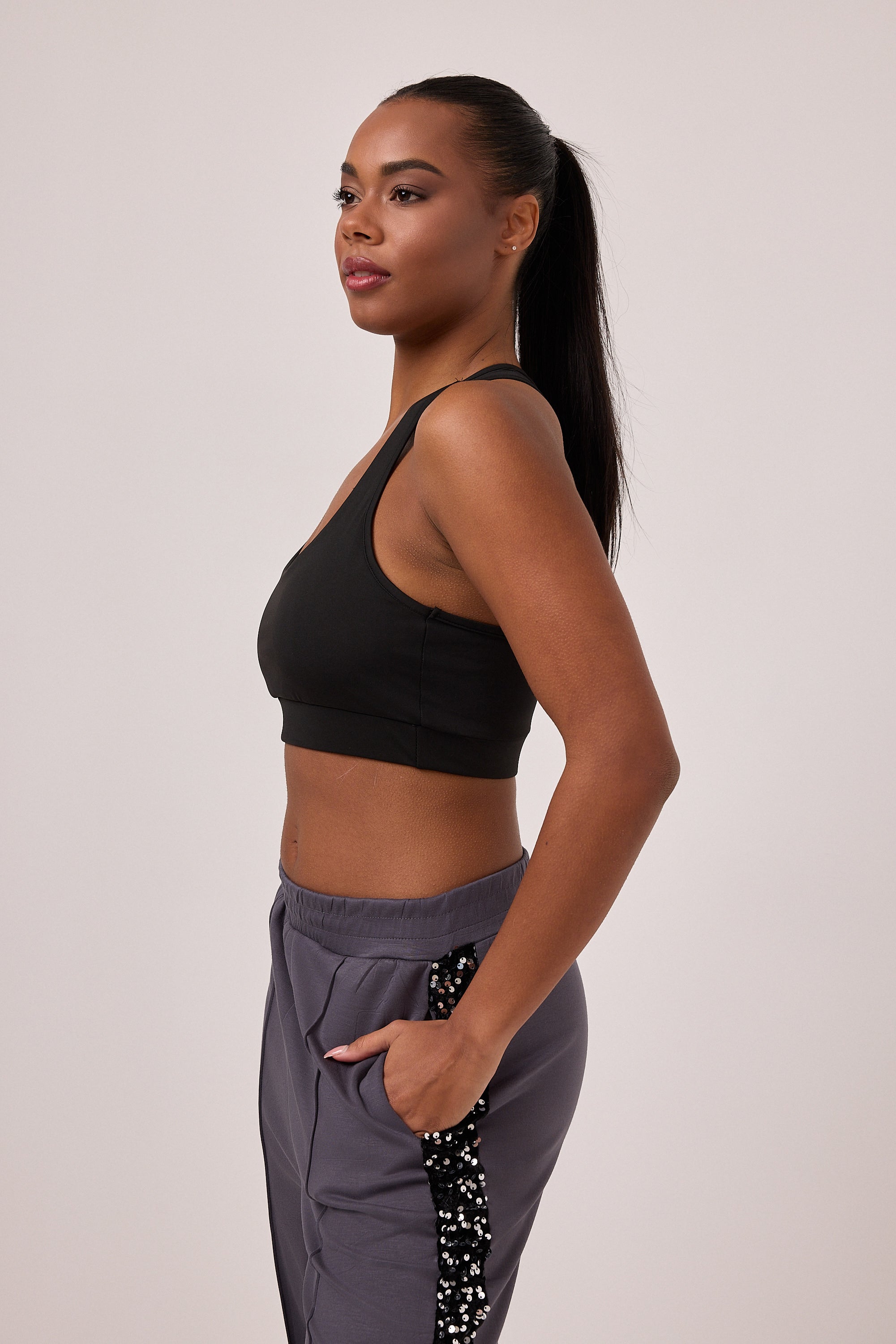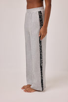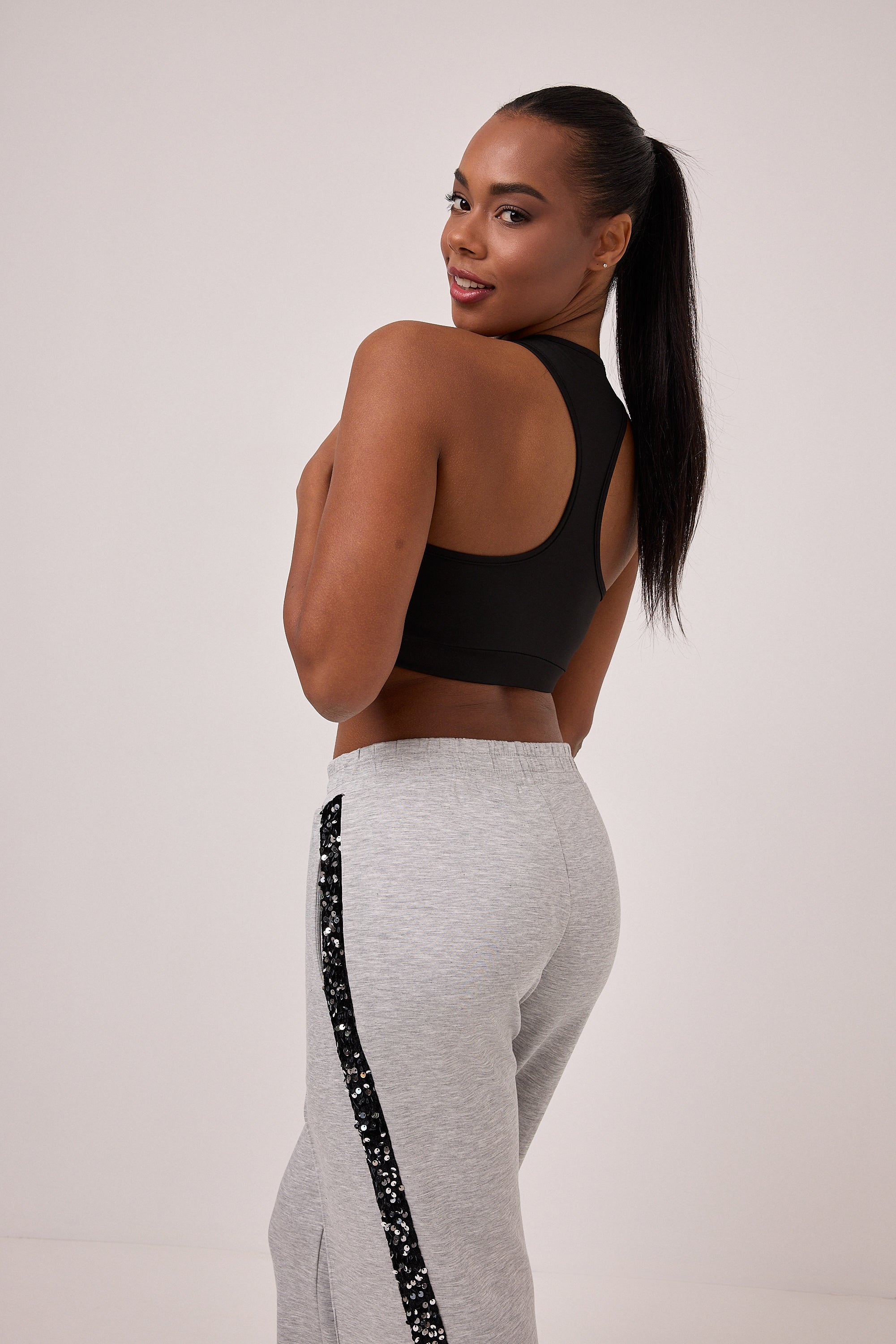 Wide trousers with decorated side band, perfect for a casual or sporty-chic look.